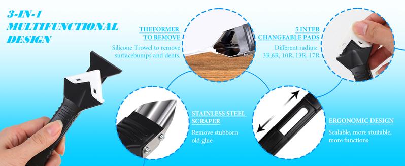 All-in-One Functionality: This 3-in-1 Sealing Pro System integrates a corner finisher, glass glue blade, adhesive scraper, and seam repairer. It's a single-tool solution for refining gaps and removing residue, streamlining your sealing and finishing tasks.